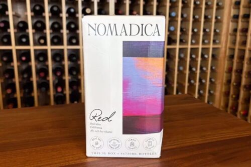 This wine is sold in a three-liter box equivalent to four standard wine bottles, and the brand also offers a 100% Teroldego canned wine with a similar flavor profile. Nomadica’s embrace of lightweight, nontraditional packaging is a part of its commitment to sustainability. The producer has even optimized the amount of colored ink used on its boxes to ensure the cardboard meets recycling standards everywhere.