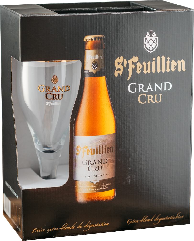 St. Feuillien Grand Cru presents a radiant pale gold hue, crowned by a luxuriously dense, snow-white foam. Its elegant aroma weaves together delicate hops and vibrant fruit notes—juicy pears and crisp white grapes—complemented by whispers of pale malt and honey. On the palate, this Grand Cru is strikingly dry yet robust, with a finely attenuated body that balances fruity bitterness and a masterful toasted malt depth. Exceptionally fresh and lively, its remarkable drinkability belies the 9.5% ABV, which lingers subtly beneath the beer’s refined character.