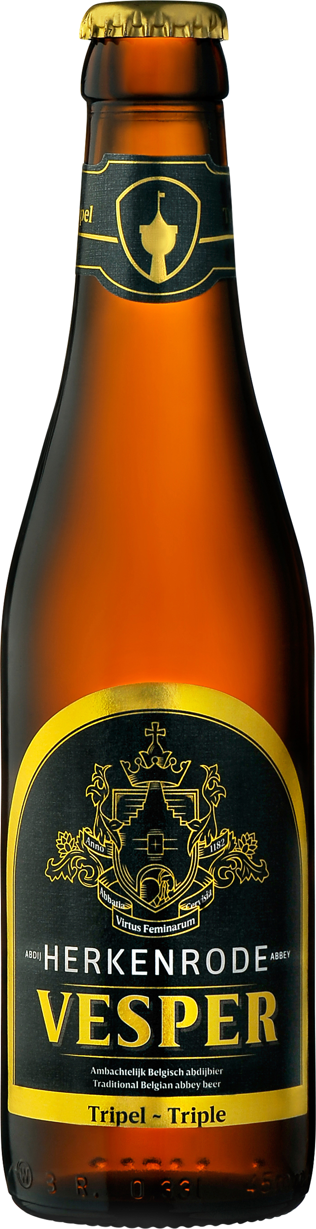 Herkenrode Vesper is a triple abbey beer that ferments a second time in the bottle. It distinguishes itself by its full taste and deep golden color. English hops add to the unique and unmistakable aroma of this robust abbey beer.