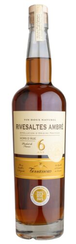 Rivesaltes Ambré (Amber) are primarily made with Grenache Noir, Grenache Blanc, Grenache Gris, Macabeu and Tourbat. This type of Vin doux Naturel requires a minimum of two and a half years of oxidative aging. The result is a deep-golden yellow color which ages toward orange, then amber and eventually reddish-brown.