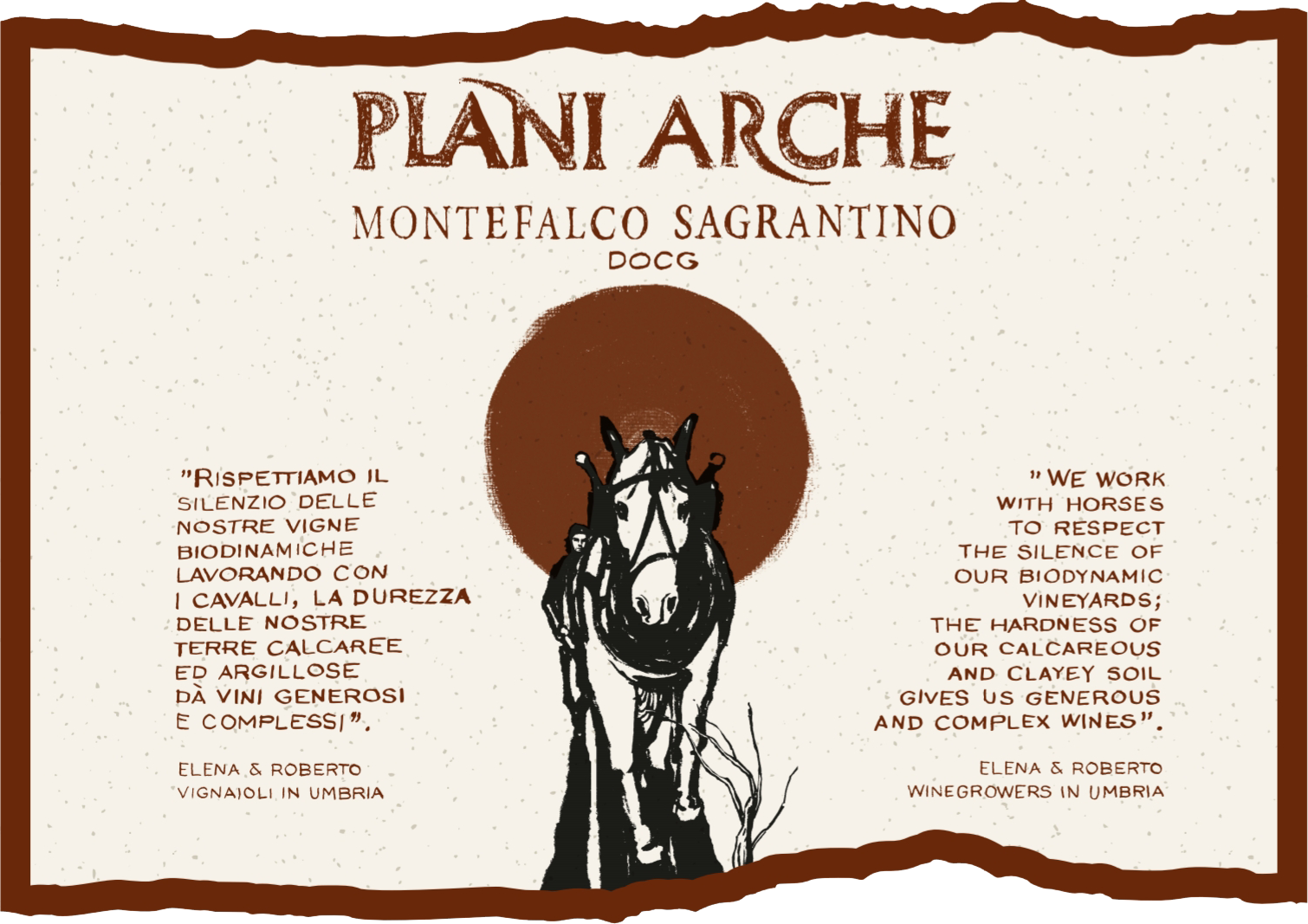 Cantina Plani Arche is located across the valley from the ancient city of Assisi. It is comprised of 6 hectares of vineyards across 6 parcels, at average elevations of 250 meters, oriented towards the southeast. The predominant soil is calcareous clay.