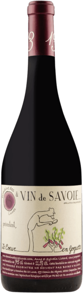 Le Coeur en Goguette is a 50/50 blend of Mondeuse and Gamay, showing notes of cherries and black licorice, followed by raspberry compote and a hint of gaminess. It has great acidity and medium tannins, with plenty to offer. Enjoy with rosemary lamb chops, coq au vin, ratatouille, or Comté cheeses.